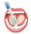 Aynı hareketi her dişin üzerinde 10'ar saniyelik sürelerle tekrarlayın.
