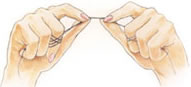 Yaklaşık 45 cm uzunluğundaki diş ipini kopartıp uçlarını orta parmaklarınıza dolayın.