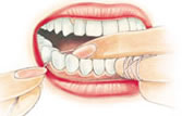 Diş ipini üst dişler arasından geçirmek için baş parmaklarınızı, alt dişler arasından geçirmek için işaret parmaklarınızı kullanın.